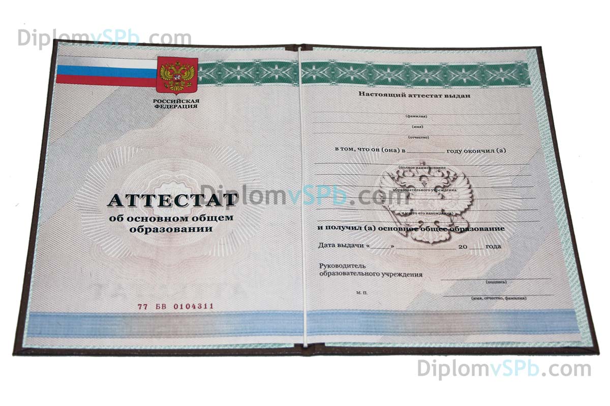 Аттестат об основном общем образовании (об окончании 9 классов) 2010, 2011, 2012, 2013 годов включительно. Документ, выданный любой школой Санкт-Петербурга и других городов.