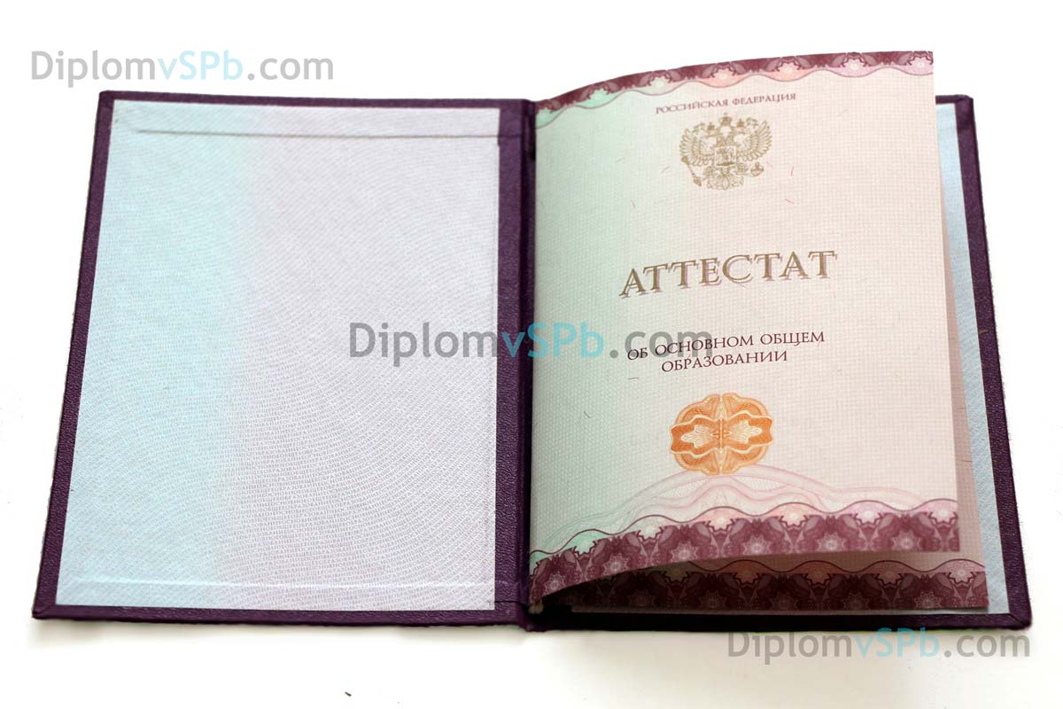 Аттестат об основном общем образовании, то есть об окончании 9 классов в 2014, 2015, 2016, 2017 и 2018 годах включительно. Документ, выданный любой школой Санкт-Петербурга и других городов.